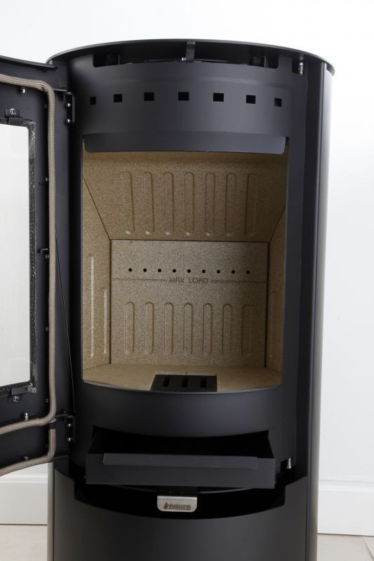 Skvost z dílny dánských vývojářů krbových kamen Aduro - kulatá konvekční krbová kamna Aduro 9 se spodní zásuvkou, mají na obou stranách spalovací komory velké prosklené otvory, které zajišťují maximální možnost pohledu na krásnou hru plamenů doslova ze všech stran. Oba boční skleněné průzory jsou opatřeny svým vlastním oplachem skla sekundárním přívodem vzduchu (sklo dvířek samozřejmě také), které zajišťují maximální možnou čistotu skel a jsou podle potřeby regulovatelné. Kamna dále přisávají primární vzduch (pod rošt - pomáhá rychlejšímu zahoření paliva k eliminaci výkyvu výkonu) a terciální vzduch (přívod předehřátého vzduchu přímo do plynů vycházejících z plamenů, což zajistí shoření plynů a vyšší účinnost kamen). Krbová kamna obsahují regulátor Aduro-tronic, systém regulace, který za Vás reguluje přisávání primárního vzduchu a zajišťuje optimální množství přívodu vzduchu a ideální proces spalování.