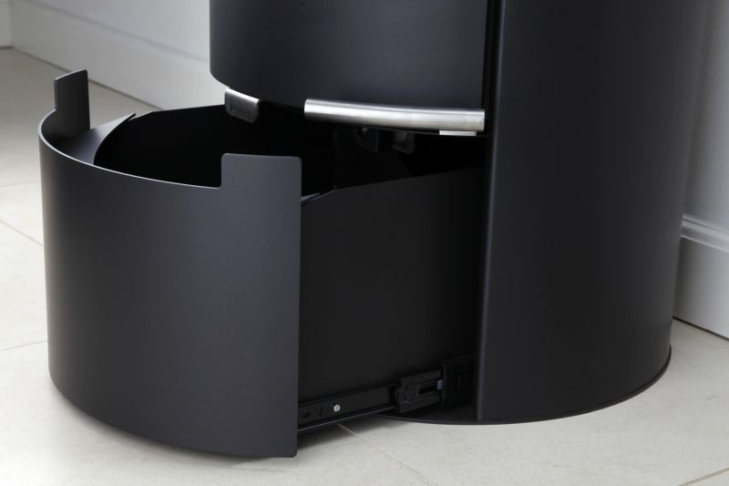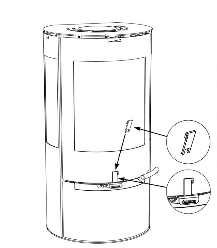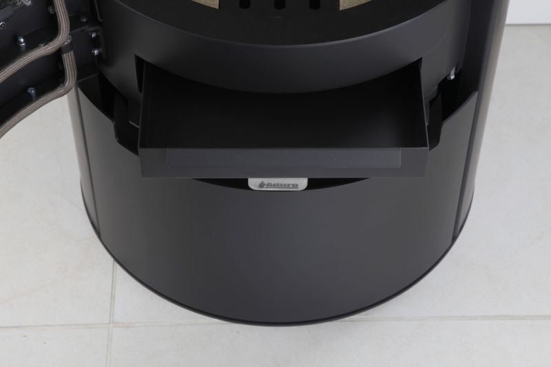 Spodní část kamen (pod spalovací komorou) tvoří velice praktický vysouvací zásobník na kolejničkách, který se používá na uskladnění několika polen, třísek, podpalovače, rukavice apod.. Prostě všech věcí, které u kamen musí být, ale není na ně zrovna hezký pohled. Díky tomuto zásobníku je máte vždy po ruce a přitom Vám "nehyzdí" interiér.