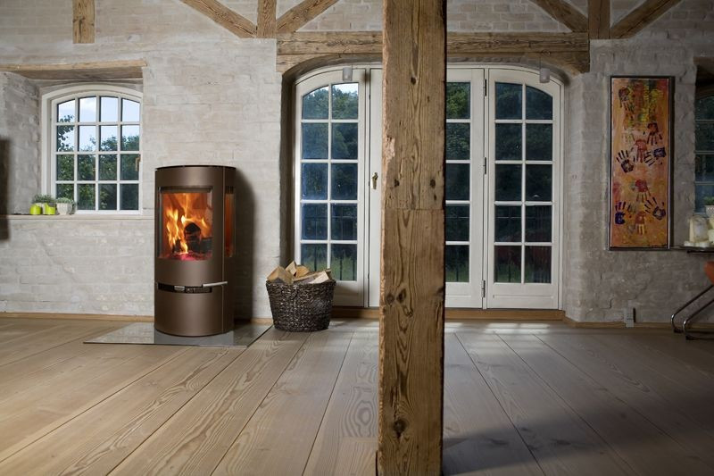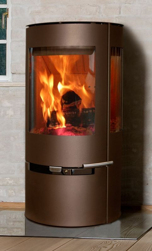 Skvost z dílny dánských vývojářů krbových kamen Aduro - kulatá konvekční krbová kamna Aduro 9 se spodní zásuvkou v elegantní hnědé metalíze. Kamna mají na obou stranách spalovací komory velké prosklené otvory, které zajišťují maximální možnost pohledu na krásnou hru plamenů doslova ze všech stran.