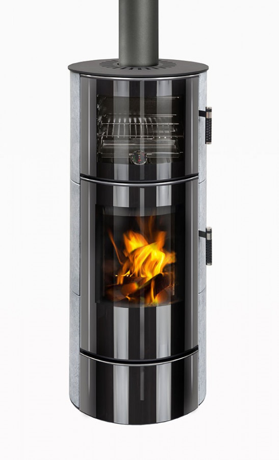 Součástí kamen je rovněž smaltovaný plech na pečení s nerezovými mřížky a pečicí plech rozměry: š.32 x v.31 x h.26 cm.
