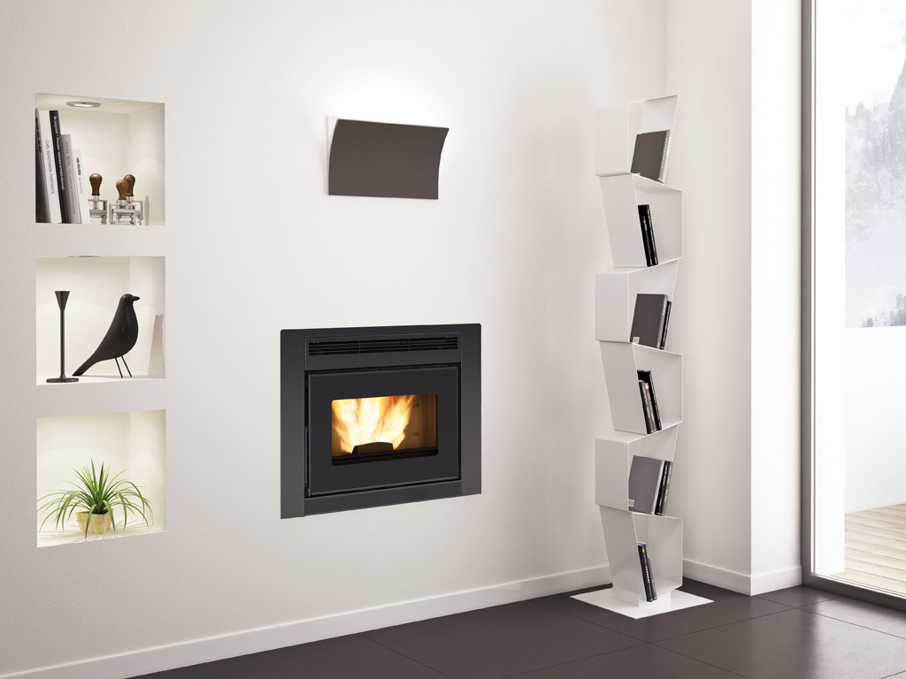 Teplovodní krbová vložka COMFORT IDRO L80 - se skládá z kvalitní oceli a litiny a průhledného skla. Ohniště je vybaveno litinovou spalovací komůrkou s přívodu spalovacího vzduchu pro ideální vyhoření pelet. Z boku litinové spalovací komůrky je umístěno zapalovací zařízení pro automatické zapálení pelet. Pod spalovací komorou se nachází popelník, který je uložen za plechovým krytem pod prosklenými dvířky. Tyto prosklené dvířka umožňují okouzlující pohled na hořící plameny. V přední části vložky se nachází displej s tlačítky pro regulaci výkonu a pokojové teploty. V zadní části se nachází přívod el. energie s vypínačem, vývod na pokojový termostat, kouřovod pro odvod spalin a trubka pro přívod spalovacího vzduchu.