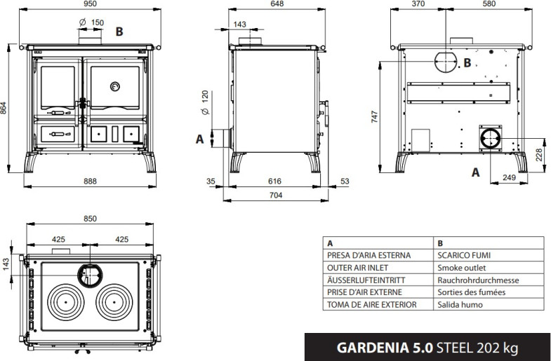 | Vzdálenost od hořlavých materiálů před kamny: | 1000 |