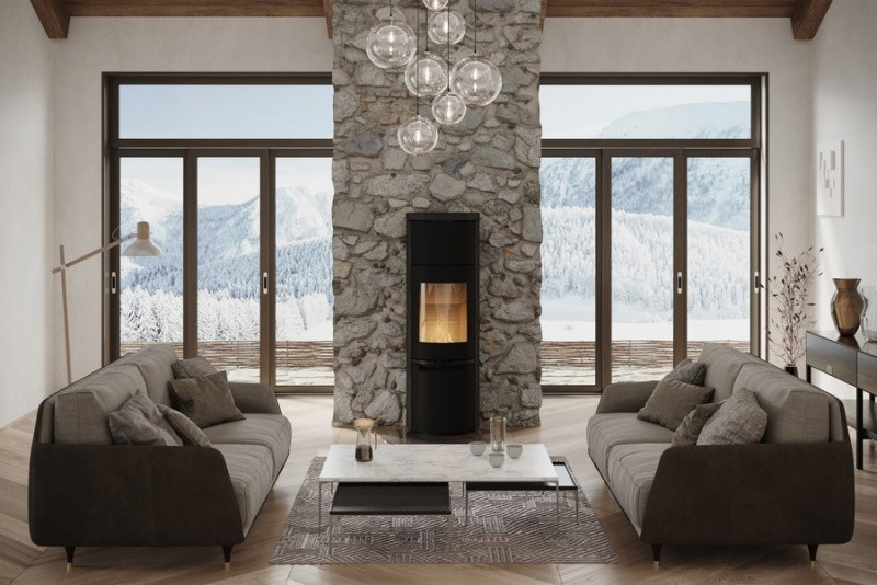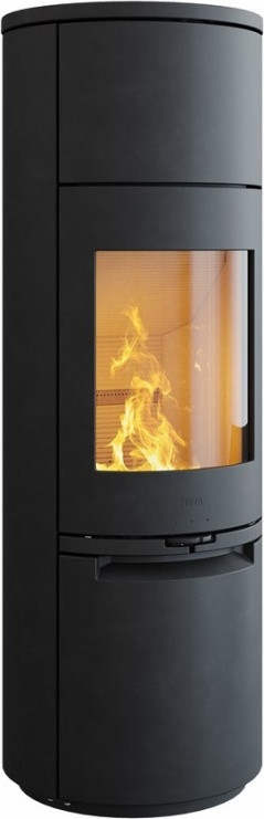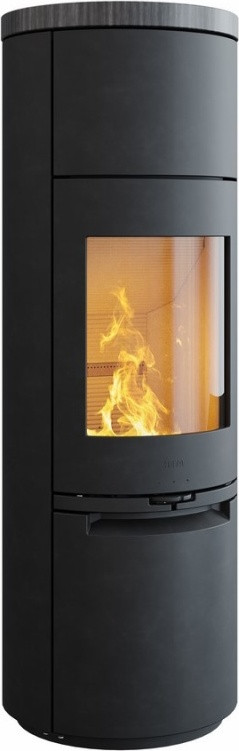 Velké prosklení zvýrazňuje krásné a efektivní spalování, které lze snadno regulovat pomocí ovládacího kolečka přívodu vzduchu na přední straně. Dveře jsou vybaveny automatickým uzavíráním, což zvyšuje komfort užívání.