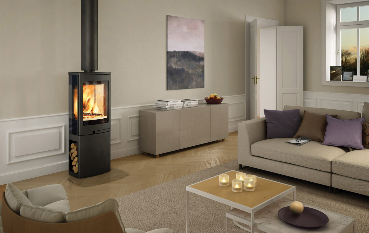 Nordpeis Duo 2 s podstavcem jsou moderní kamna na dřevo s velkými prosklenými dvířky a bočním sklem, které nabízejí dobrý výhled do plamenů. Kamna mají na boku praktický výklenek na dříví pro uložení dříví. Kamna na dřevo lze napojit na externí přívod vzduchu, což by se mělo používat v dobře izolovaných domech s minimálním přirozeným větráním.