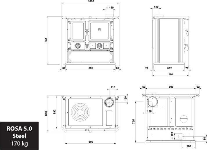 | Vzdálenost od hořlavých materiálů před kamny: | 1000 |