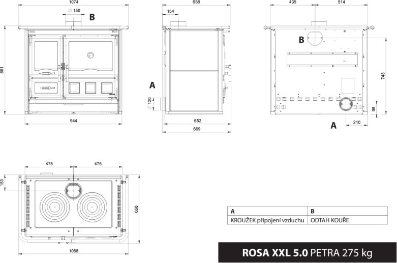 | Vzdálenost od hořlavých materiálů před kamny: | 1000 |