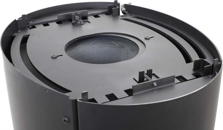 Ve spodní části kamen je integrované krbové nářadí přímo ve dvířkách (set obsahuje lopatku, smetáček a pohrabáč) a patentovaný utěsněný popelník s objemem 8 litrů.