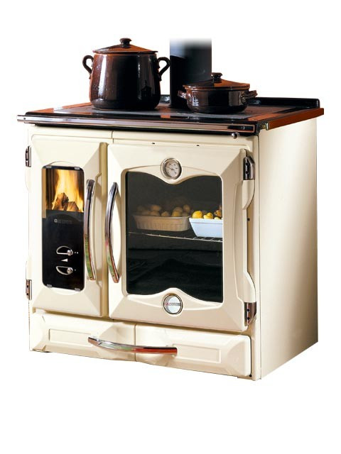 Sporák na dřevo Suprema je absolutní špička v konstrukci litinových sporáků. Plotna a rám, rošt, všechny dvířka – vše z masivní litiny, která je povrchově chráněná skleněným smaltem. Trojité spalování s oplachem skla horkým vzduchem nedovolí zanesení skla. Integrovaný teploměr v troubě pomáhá k správnému voňavému pečení! Litina, ocel, sklo - tři materiály z kterých jsou sestaveny tyto sporáky. Sporák - je ze slova spořit a zde je úspora na čtyři pády. Spalujete dřevo - nejdříve máte pohled na hoření jako v krbu. Teplo vyprodukované ohřeje plotnu na které uvaříte. Při přepnutí kouře na troubu upečete! A za čtvrté vytopíte prostor až 100m2. To je přece ideální pro domácnost.