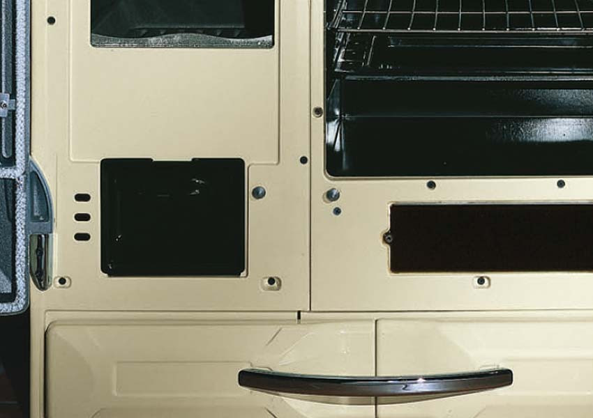 Vnitřní korpus je sestaven ze smaltovaných a pozinkovaných plechů. Tento základ slouží jako nosný prvek na uchycení dveří, rámu plotny, vložené trouby a ohniště.I další prvky jsou unikátní. Spalovací prostor má třístupňové hoření a je obložen litinovými deskami, dvojité prosklení přikládacích dvířek s regulací primárního a sekundárního vzduchu. Smaltovaná trouba je osazena teploměrem, pečícím plechem a mřížkou. Konstrukčně je vše vyřešeno, aby pečení bylo rovnoměrné a stálé. Ochrana trouby proti propálení je vyřešena vložením nerezového plechu. Velikost trouby je š.436mm x v. 418mm x h.430mm. Spodní vysouvací šuplík je na menší množství dřeva nebo také na zapalovací potřeby.