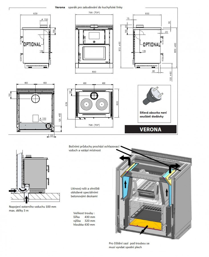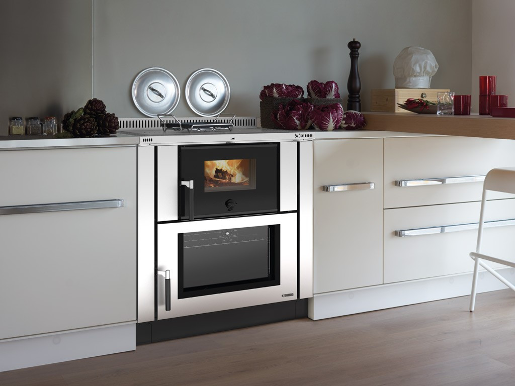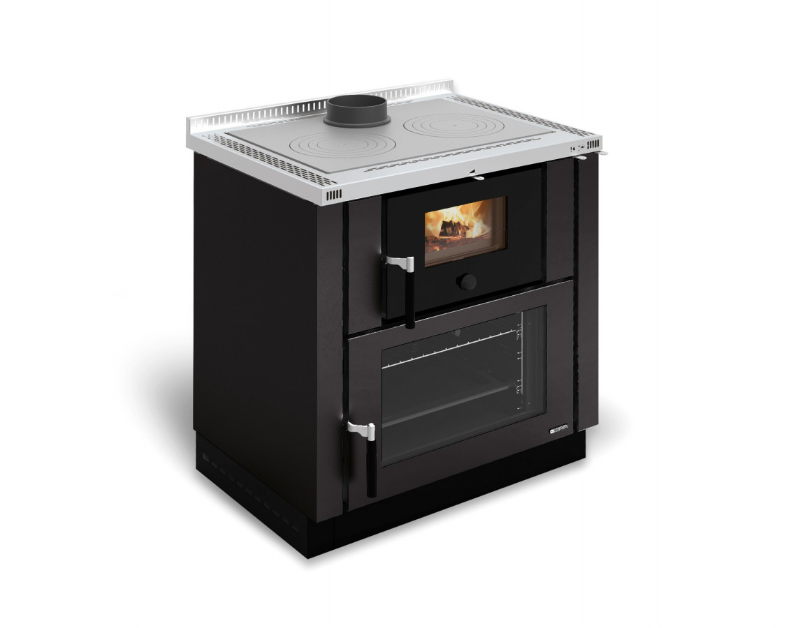 Kdo požaduje jen to nejlepší, je na správné adrese. Šířka jen 80 cm je optimalizována pro osazení do kuchyňské linky. Boční teplovzdušné stěny umožňují osazení do linky a ještě vytápí teplým vzduchem celou místnost. Unikátní provedení s troubou dole pod ohništěm má mnoho výhod. Pro vaření - plotna blízko ohniště má vysokou teplotu, při přepnutí na troubu jdou spaliny boky dolů, kde rovnoměrně ohřívají prostor na pečení, termostaticky řízený přívod vzduchu rovnoměrně topí a šetří palivo, přívod externího vzduchu umožňuje použití i do nových utěsněných domů!