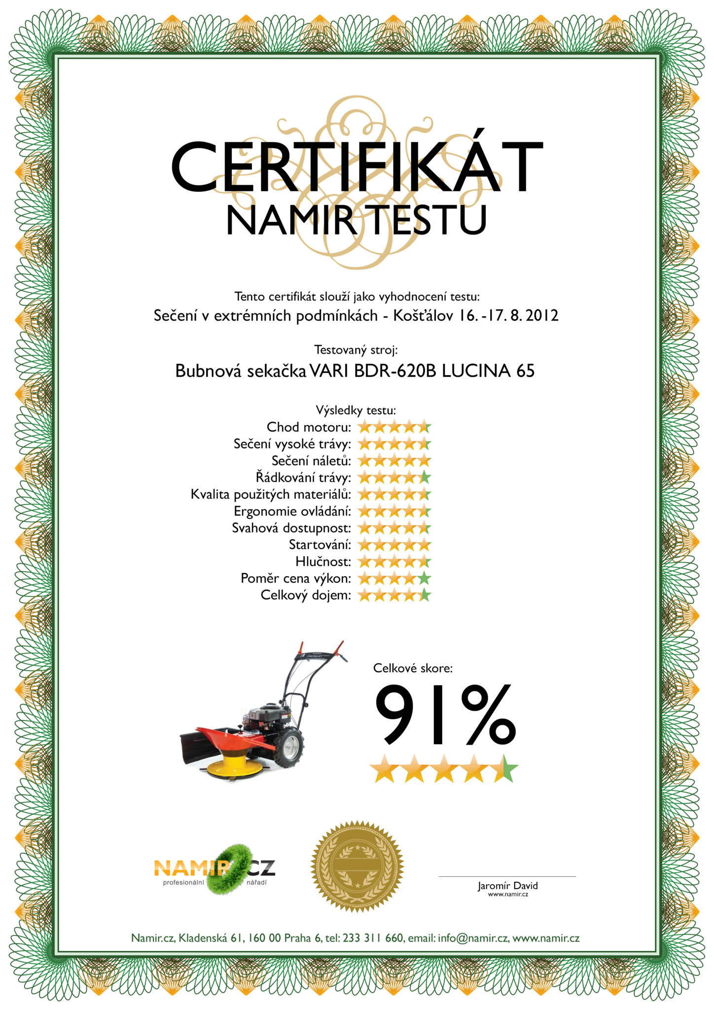 Video Test bubnové sekačky BDR-620B LUCINA 65 VARI - 2. místo, 91%